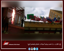 راز نصب پرچم آمریکا در خیابان ولیعصر(عج)نصب پرچم آمریکا در کنار پرچم جمهوری اسلامی ایران در یکی از خیابان‌های تهران توجه بسیاری را جلب کرده بود .بتازگی پرچم‌های کشورهای مختلف در خیابان ولیعصر (عج) نزدیک تقاطع طالقانی نصب شده است؛‌ آنچه که در این میان توجه کاربران فضای مجازی را به خود جلب کرده است قرار دادن پرچم آمریکا در کنار پرچم جمهوری اسلامی ایران است تصویر منتشر شده مربوط می شود به فرهنگستان هنر. یک منبع آگاه گفته است، که فرهنگستان هنر میزبان جشنواره هنرهای تجسمی فجر است و بر همین اساس پرچم همه شرکت کننده‌ها از جمله آمریکا بر سر در این ساختمان نصب شده است، سرانجام این پرچم هم مانند سایر پرچم های امریکا یکی بوده و پس از پایین کشیده شدن به آتش کشیده شد.
