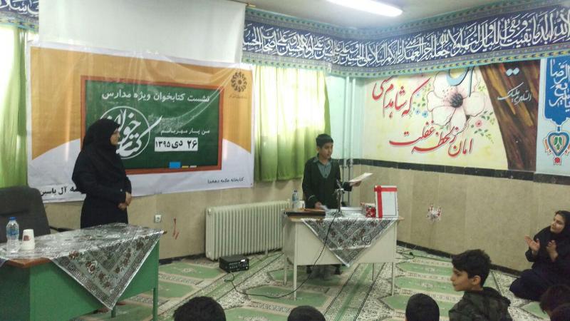 به گزارش خبرگزاری صداوسیما ، به منظور تقویت و ترویج خواندن در میان دانش آموزان نشست کتاب‌خوان با حضور 100 نفر در مدرسه پسرانه آل یاسین برگزار شد.در این نشست 8  تَن به معرفی کتاب پرداختند که بدین شرح است؛"کوچک اندازه فیل نوشته جنیفر جیکسون" را سرکار خانم راضیه محمد قلی زاده کتابدار کتابخانه علامه دهخدا ارائه کرد. این کتاب ماجرای پسری به نام «جک مارتل» را بیان می‌کند که وقتی در صبح اولین روز سفر با مادرش به پارک ملی آکیدیا از چادر بیرون می‌رود. مادرش را گم می کند .جک تک و تنها در حالی که هیچ دوست دیگری جز یک فیل پلاستیکی همراهش نیست، شروع به گشتن تمام جاهایی می‌کند که قرار بود با هم ببینند. او در نهایت فیل بزرگ را از نزدیک می بیند."اکبر کاراته و بچه ننه ها نوشته محسن صالحی" را شهاب همتی دانش آموز پایه هفتم ارائه کرد. این کتاب سومین کتاب از مجموعه داستان‌های طنز دفاع مقدس برای نوجوانان است که هفده خاطره شیرین از نوجوانان جهاد سازندگی را نقل می‌کند. خاطره‌ی نماز شب خواندن شخصی به نام «رادی» و جشن پتویی که اکبر کاراته و دوستانش برای او می‌گیرند یکی از این خاطره هاست."قصه های شیخ عطارنوشته مهدی آذریزدی "را ابوالفضل نساری دانش آموز پایه هفتم ارائه کرد. این کتاب از مجموعه قصه های خوب برای بچه‏های خوب دارای 21 داستان از آثار شیخ عطار است که به بیان ساده و قابل فهم برای کودکان نوشته شده است. عطار مردی طبیب بود و در شهر نیشابور داروخانه و عطاری داشته و با کار خود در سراسر عمر خود به مردم خدمت می‌کرده، آرامگاهش نیز در نیشابور است. از شیخ عطار هفت کتاب شعر موجود است که معروف‌ترین آن‌ها «منطق‌الطیر»، «مصیبت‌نامه» و «الهی‌نامه» است."مدرسه‌ی نیما نوشته بنفشه رسولیان" را سهیل محمدی دانش آموز پایه هفتم ارائه کرد. مجموعه چهارجلدی نیما شامل بهار ، تابستان، پاییز و زمستان با نام‌های:تعطیلات نوروزی نیما، بازیگوشی‌های نیما،مدرسه نیما، دردسرهای نیما است.  کتاب مدرسه نیما؛  مجموعه خاطرات نوجوانی به نام نیماست که به بازیگوشی که در مدرسه انجام می دهد باعث می شود داستانهایی طنز و دالنشین برای نوجوانان ایجاد شود. در این مجموعه به زبانی ساده و طنز آمیز، ماجراهایی که در مدرسه اتفاق افتاده را، بیان می‌کند."رفاقت به سبک تانک نوشته داود امیریان"  را عرشیا وحدانی دانش آموز پایه هفتم ارائه کرد.رفاقت به سبک تانک مجموعه طنز هایی در باره جبهه و جنگ است. این کتاب شامل چهل و هفت قطعه طنز پیرامون حوادث جنگ است  .ماجرا با داستان کوتاهی به نام «می روم حلیم بخرم» شروع می شود و نوجوانی را نمایش می دهد که مشتاق رفتن به جبهه است. داستان ها و قطعات دیگری که به دنبال آن می آیند در واقع تکمیل کنند این داستان اول هستند. "دفتر خاطرات بچه لاغر مردنی نوشته جف کینی" را مهدی فرخی دانش آموز پایه هفتم ارائه کرد. این کتاب مجموعه 8 جلدی از خاطرات و شیرین کاری های یک پسر نوجوان و لاغری است که تصمیم می گیرد به پیشنهاد مادرش خاطراتش را بنویسد. این کتاب دارای تصاویر بسیار خوبی می باشد که جذابیت داستان را چند برابر می کند."لطیفه های شیرین عبید زاکانی نوشته شهرام شفیعی "را ابوالفضل مرادی خشک ارائه کرد.این کتاب با زبانی ساده شامل لطیفه های طنز و شیرین که برای نوجوانان نگاشته شده است. و حاوی حکایتهای طنز نظیر دوستی، خرگم شده، داستان حضرت یونس که مخاطب با خواندن آنها لذت می برد. "قصه های نو از متون کهن نوشته حمید هاشمی" را سرکار خانم آسترکی معلم مدرسه آل یاسین ارائه کرد. این مجموعه دربرگیرنده قصه های کلاسیک ایرانی چون کلیله و دمنه، مرزبان نامه، گلستان و... به زبانی قابل فهم برای بچه هاست. این کتاب گنجینه‌ای ارزشمند از متون کهن به زبانی ساده و قابل درک برای کودکان و نوجوانان است .