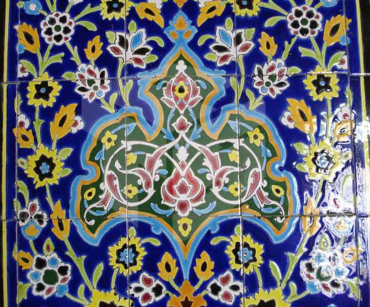 از کاشی هفت رنگ بکار رفته در مساجد و بقاع متبرکه جنوب کشور توسط هنرمندان شیراز تهیه