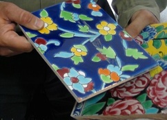 استاد احمد در همین کارگاه در کار طراحی و رنگآمیزی و پخت کاشیها، پختهتر