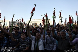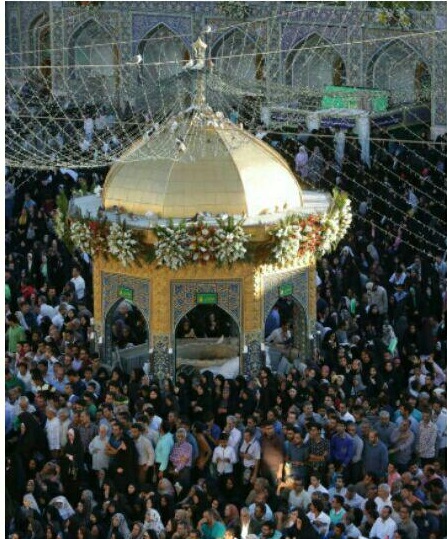 همزمان با نواختن نقاره ها جمعیت بی شمار زائران در صحن و سرای رضوی با وجد بی پایان از این ولادت مبارک و توفیق حضور خود در جوار ولی نعمت خود، اشک شوق بر گونه داشتند و زیر لب رضا رضا می گفتند.