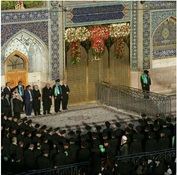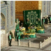 پس ازمراسم نقاره نوازی، آیین با شکوه تعویض پرچم و پوشش ضریح مطهر رضوی با حضور مسئولان و خدام پس از قرائت زیارت خاصه حضرت رضا(ع) آغاز شد.