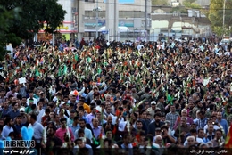 در این مراسم خادمان سادات رضوی پرچم سبز آستان قدس رضوی مزین به کلمه "لا اله الا الله" و آیه مبارکه "نصر من الله و فتح قریب" را تا کنار گنبد منور منتقل کردند سپس یکی از خدام بعد از پایین آوردن پرچم قبلی، پرچم جدید متبرک آستان قدس رضوی را بر فراز گنبد طلایی حرم حضرت رضا(ع) به اهتزاز درآورد.