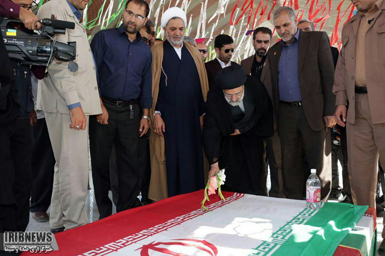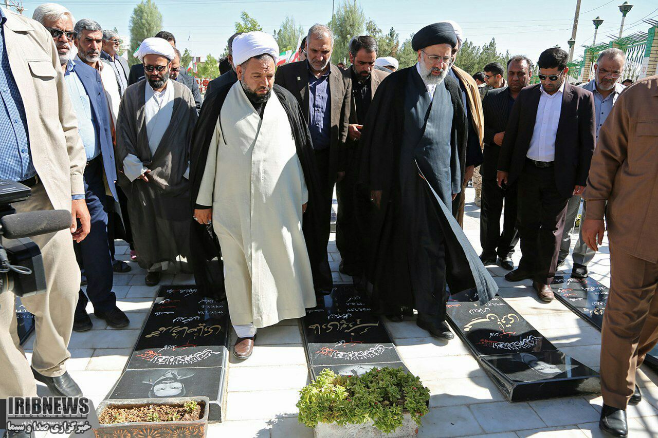 حجت الاسلام رئیسی ، تولیت آستان قدس رضوی عصر امروز در ابتدای ورود به زاهدان به گلزار شهداء رفت و به مقام شهیدان گرانقدر ادای احترام کرد.
