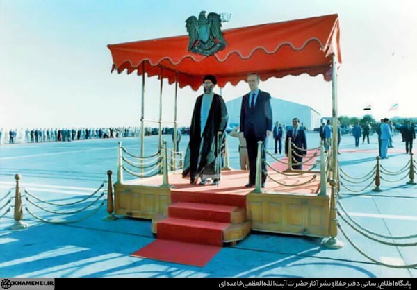 در این شرایط، نخستین سفر خارجی یک رئیسجمهور در تاریخ ایران، زمانی رقم خورد که حضرت آیتالله خامنهای رئیسجمهور وقت کشورمان، به دعوت «حافظ اسد» رئیسجمهور فقید سوریه، راهی «دمشق» شدند. این سفر که در پانزدهم شهریور ۱۳۶۳ آغاز و به مدت هفت روز ادامه پیدا کرد، آغاز یک دور سفر منطقهای بود که افزون بر سوریه، کشورهای لیبی و الجزایر را نیز دربرمیگرفت. حضرت آیتالله خامنهای و هیأت همراه ایشان در جریان این سفرها، به مذاکره و گفتوگو با سران کشورهای مذکور پرداختند. علاوه بر اهداف دوجانبهی سیاسی و نظامی، هدف اصلی این مذاکرات، منزویتر کردن رژیم صهیونیستی و مقابله با روند سازش در میان کشورهای عربی بود.