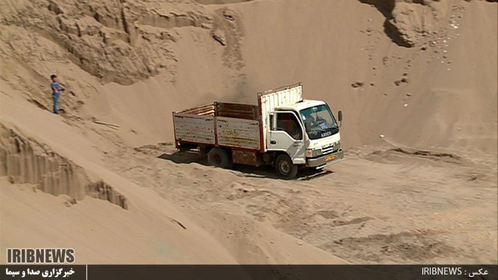 حضور این وسایل نقلیه در منطقه ای بکر و طبیعی برایمان سوال برانگیز می شود. جلوتر که می رویم، معلوم می شود سرنشینان خودروها تعدادی از روستائیان همین منطقه اند و مشغول برداشت ماسه از تپه ها.
