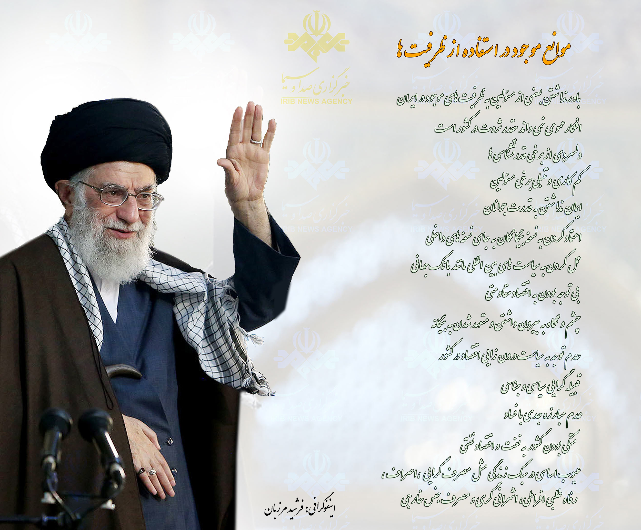 بخش بعدی سخنان رهبر انقلاب اسلامی در خصوص ضرورت و چگونگی استفاده بهتر از استعدادها و ظرفیتهای فراوان طبیعی و انسانی برای پیشرفت ایران بود.