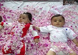 در این مراسم که بانوان در حین پرپر شدن گل ها، هم زمان صلوات می فرستند و حضرت محمد(ص) را با احترام خاصی یاد می کنند، نوزادان یکساله تازه حمام شده میان پارچه ای سفید و بزرگ گذاشته می شوند و در میان گلبرگ های معطر و خوش بوی محمدی قرار می گیرند.