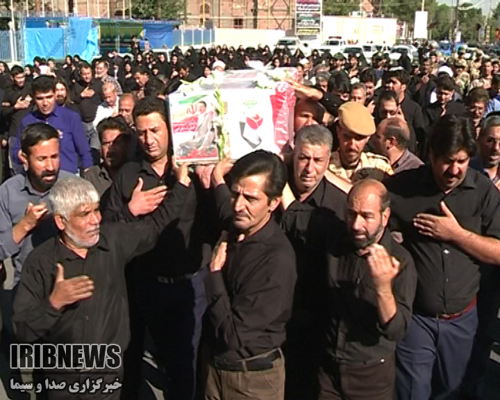 پیکر مطهر شهید امان الله دارابی امروز بر دوش مردم شهید پرور شهر جوپار در شهرستان کرمان تشییع شد .