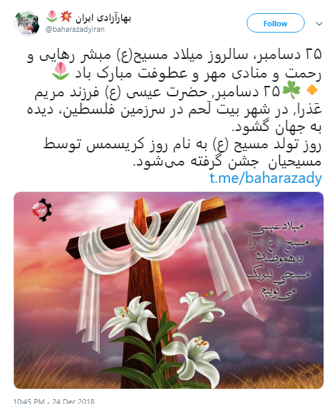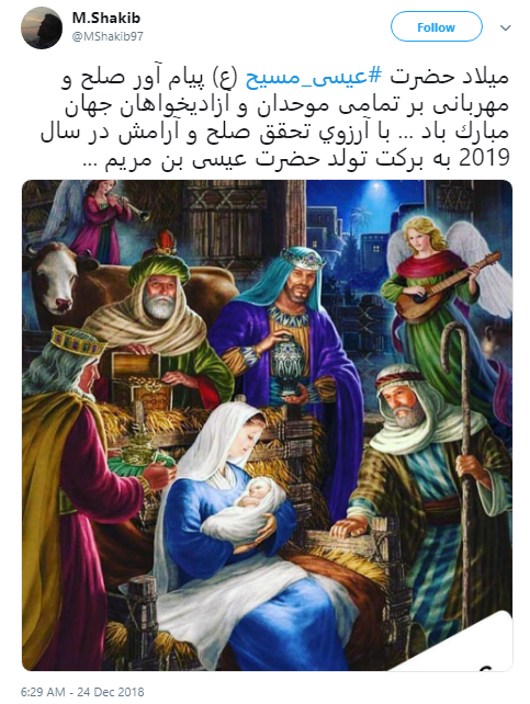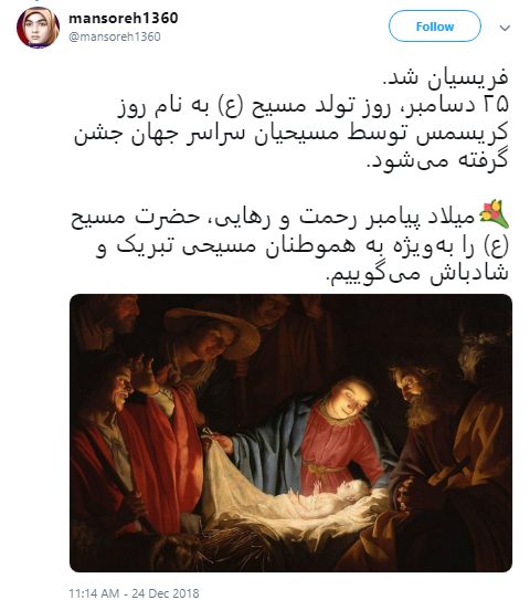 به گزارش سرویس فضای مجازی خبرگزاری صداوسیما؛ حضرت عيسي بن مريم(ع) پيامبر بزرگ الهي و اولوالعزم، در روز ۲۵ دسامبر سال اول ميلادي، ۶۲۲ سال قبل از هجرت پيامبر بزرگ اسلام(ص)، در بيت لحم واقع در سرزمين فلسطين به دنيا آمد.