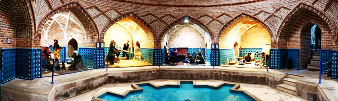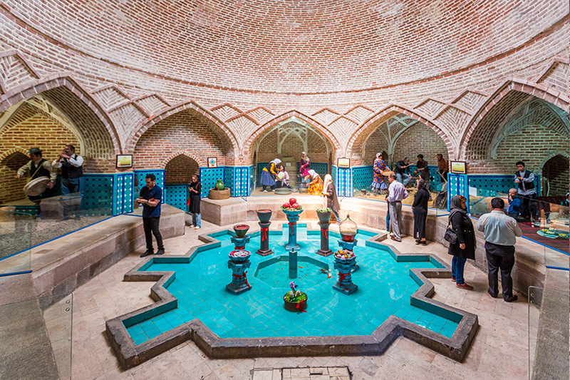 نظری اضافه میکند: به سمت خیابان عبید زاکانی جایی که حمام زیبای قجر در آنجا قرار داشت رهسپار شدیم.حمام قجر یکی از کهنترین و بزرگترین گرمابههای شهر قزوین است. در سال ۱۰۵۷ هجری قمری و به دستور شاه عباس صفوی ساخته و در ابتدا آن را «حمام شاهی» مینامیدند.این حمام از سه بخش اصلی سربینه، میاندر و گرمخانه تشکیل شده و قسمت زنانه و مردانهی این حمام مجزاست.درحال حاضر این مکان تبدیل به موزه مردم شناسی شده و روی سکوها، مجسمههای مومی مختلفی از آداب و رسوم گذشته دیده میشه. این مجسمهها بیانگر سه دسته مشاغل، زندگی روزمره و آداب و رسوم مردم قزوین در گذشته است.یک بخشی از این حمام هم اختصاص یافته به فروش زیورآلات و آتلیه عکاسی کوچک که به مشتریان خدمات ارائه میکند.