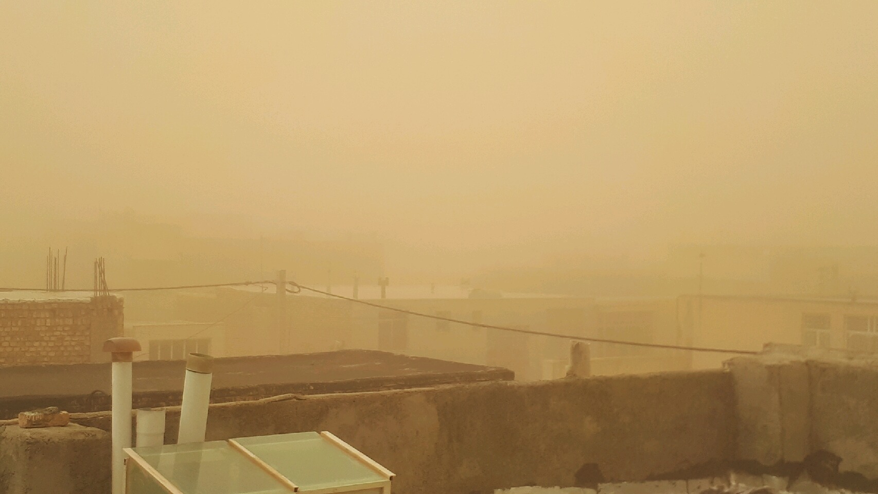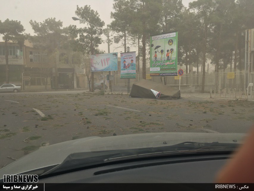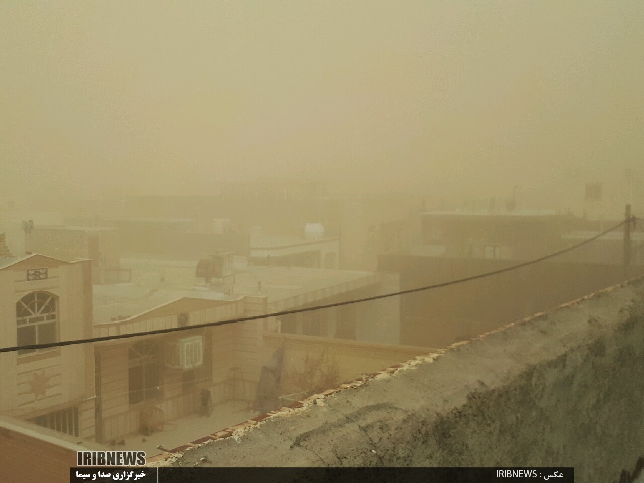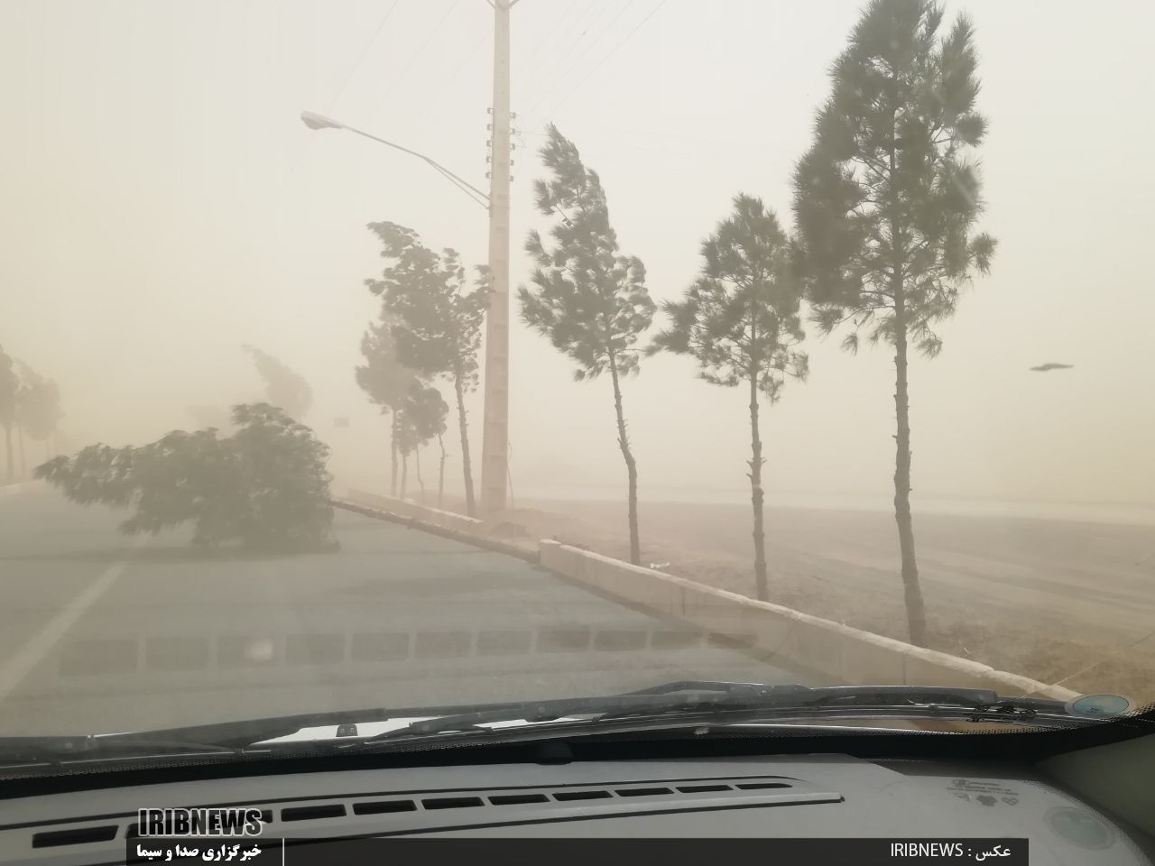 طوفان و وزش باد شدید و گرد و غبار که شعاع دید را تا کمتر از 100 متر کاهش داد.