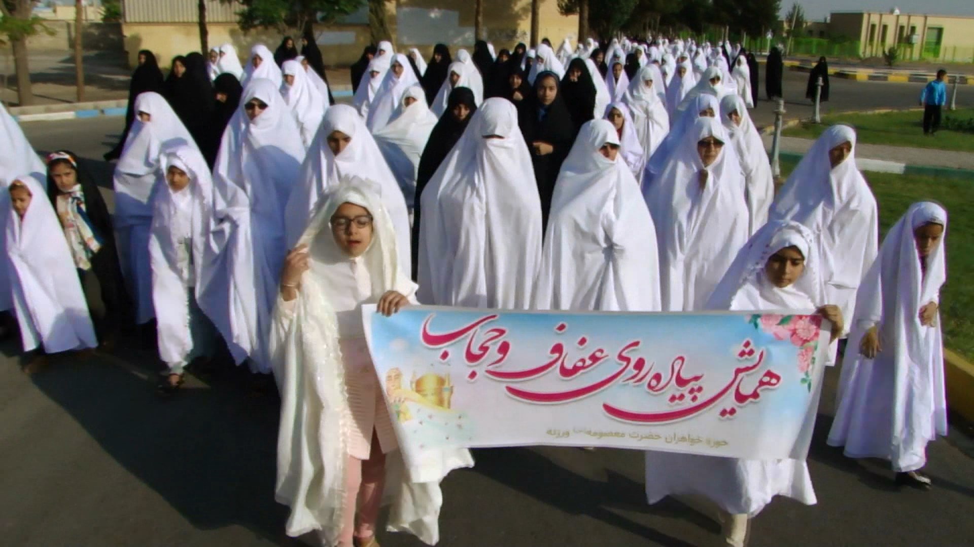 به مناسبت روز عفاف و حجاب، همایش پیاده روی بانوان چادر سفید در شهر ورزنه برگزار شد.