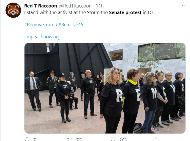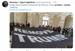 به گزارش سرویس بین الملل خبرگزاری صدا و سیما، بازداشت و توهین به فعالان مخالف ترامپ در دو ساختمان سنای آمریکا که خواهان برکناری هرچه سریعتر وی شدند، بازتاب گسترده‌ای در توئیتر داشت.