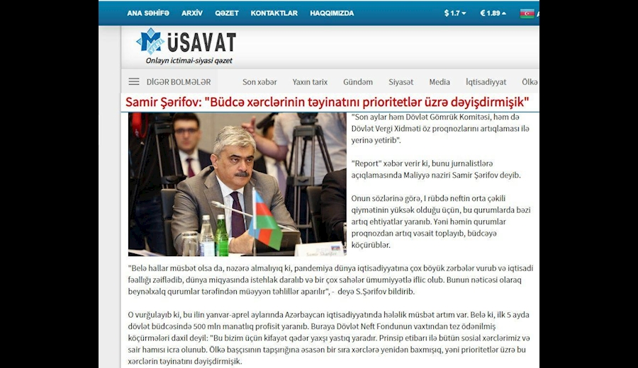 - وزیر دارایی جمهوری آذربایجان بااشاره به کاهش قیمت نفت و مشکلات ناشی از کرونا اعلام کرد تخصیص بودجه بر اساس اولویت‌های فعلی تغییر یافته است.