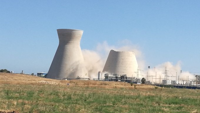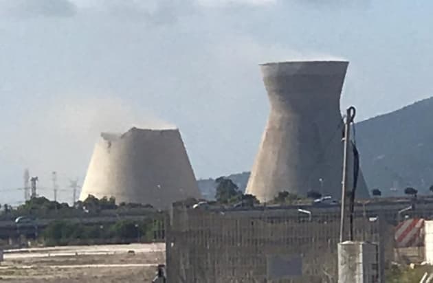یکی از برجهای خنک کننده پالایشگاههای نفت در سرزمين های اشغالی فرو ریخت.