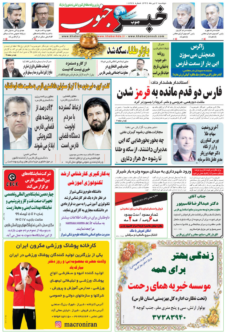 صفحه نخست برخی روزنامه‌های فارس ۲ تیر
