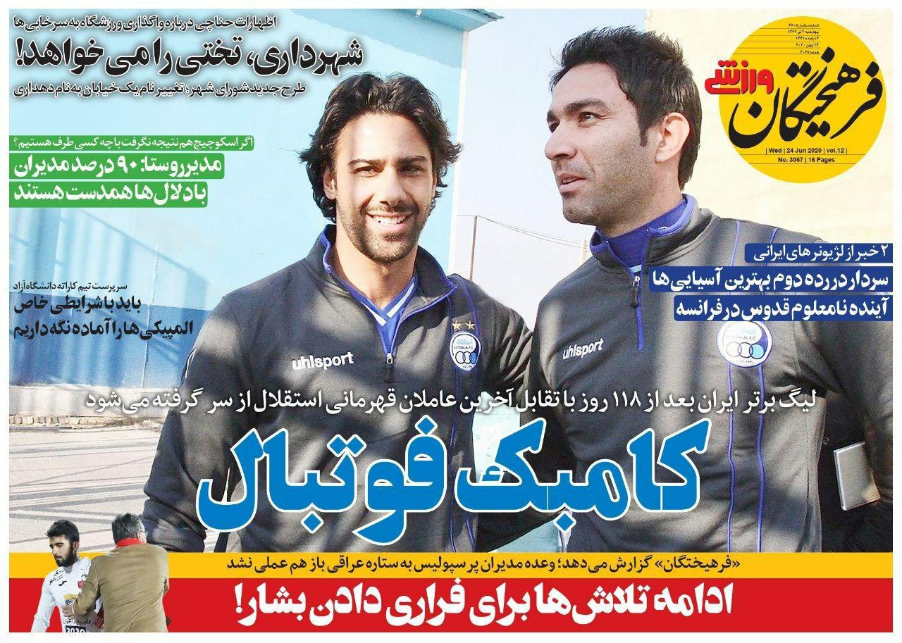 آغاز مجدد رقابت های لیگ برتر و فوتبال و تقابل شاگردان مجیدی و نکونام در اهواز تیتر نخست روزنامه های ورزشی امروز است.