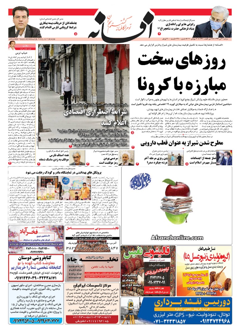 به گزارش خبرگزاری صدا و سیما، مرکز فارس، صفحات نخست روزنامه‌های امروز دوشنبه ۳۰ تیر فارس را ببینید.