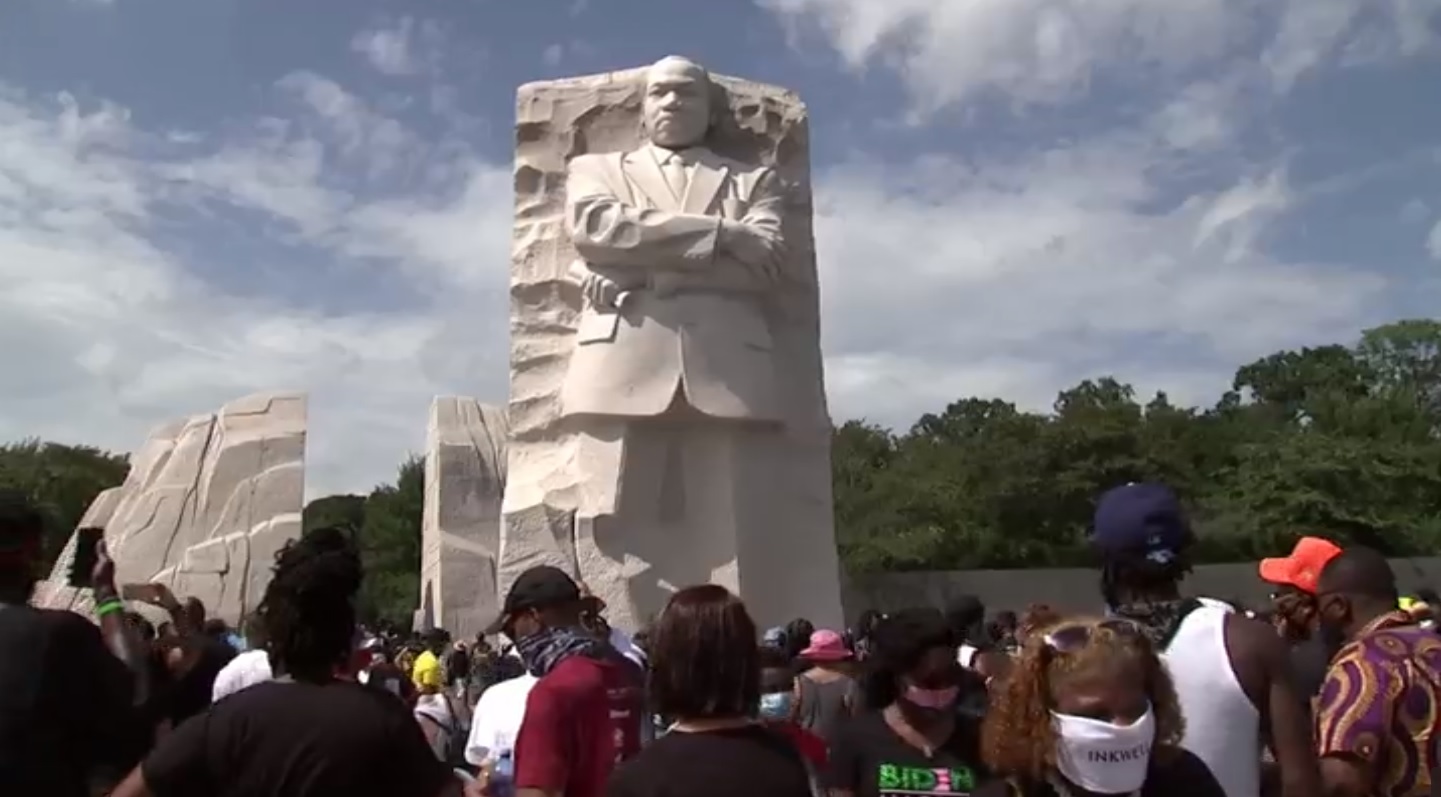 در پایان این گزارش، معترضان در کنار بنای یادبود مارتین لوتر کینگ دیده میشوند.