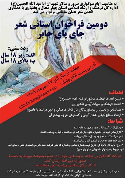 دومین فراخوان استانی شعر «جای پای جابر» در چهارمحال و بختیاری اعلام شد.