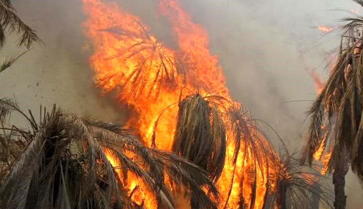 آتشی که در نصف روز تمام نخلهای ۲۰ ساله باغداران را در روستای برغنی حاجی آباد کُشت.