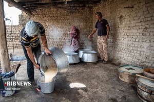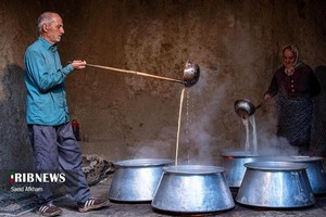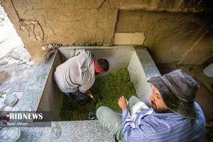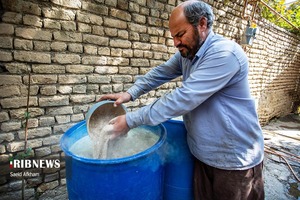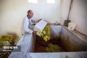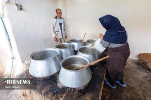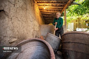 به گزارش گروه عکس خبرگزاری صدا وسیما؛ شیره انگور ماده‌ای است شربت مانند و غلیظ که از آب انگور استحصال می‌شود. با انجام عملیات تبخیر و تغلیظ بر روی آب انگور شاهد عمل آوری شیره انگور هستیم. نکته قابل توجه در این سنت کهن، استفاده از نوعی خاک در تهیه شیره انگور است، خاکی سفید یا شیری رنگ که از دل کوه‌های روستای مانیزان و درّه جوزان تهیه می‌شود. این خاک را گذشتگان این مرز و بوم به صورت تجربی از دل کوه به دست آورده‌اند و به دلیل دارا بودن مقداری آهک در خاک شیره، تمامی املاح و ناخالصی‌های آب انگور را می‌گیرد و آبی زلال برای تهیه شیره تحویل می‌دهد.