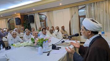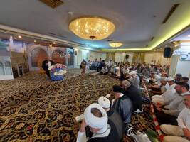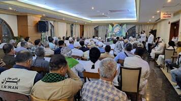 حجت الاسلام و المسلمین سید عبدالفتاح نواب سرپرست حجاج ایرانی در سومین هفته حضور خود در مراسم دعای کمیل در جمع ضیوف الرحمان هتل مدینه الجدیده، سخنرانی کرد.