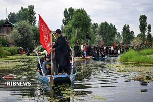 در مراسم عزاداری عاشورای حسینی، صدها نفر از مردم مسلمان کشمیر در راهپیمایی قایق های کمیاب در دریاچه دال سرینگر کشمیر شرکت کردند. این موکب متشکل از قایق هایی است که توسط یک قایق موتوری حرکت می کند .