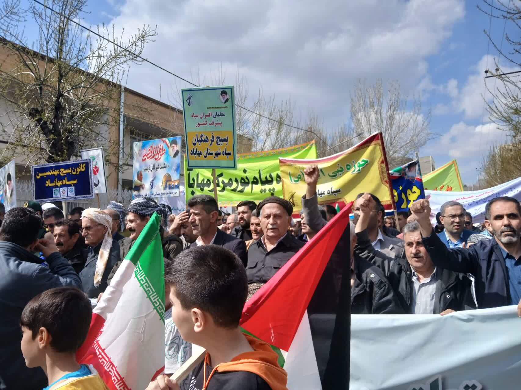 مردم مهاباد بار دیگر با سردادن شعار‌های مرگ بر رژیم غاصب صهیونیستی و مرگ برآمریکا، حماسه‌ای ماندگار خلق و همبستگی خود را با زنان، مردان و کودکان مقاوم و مظلوم فلسطین اعلام کردند.