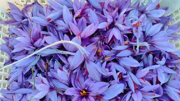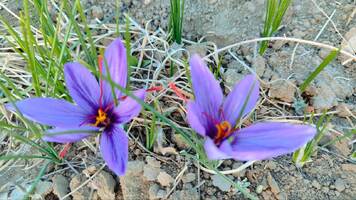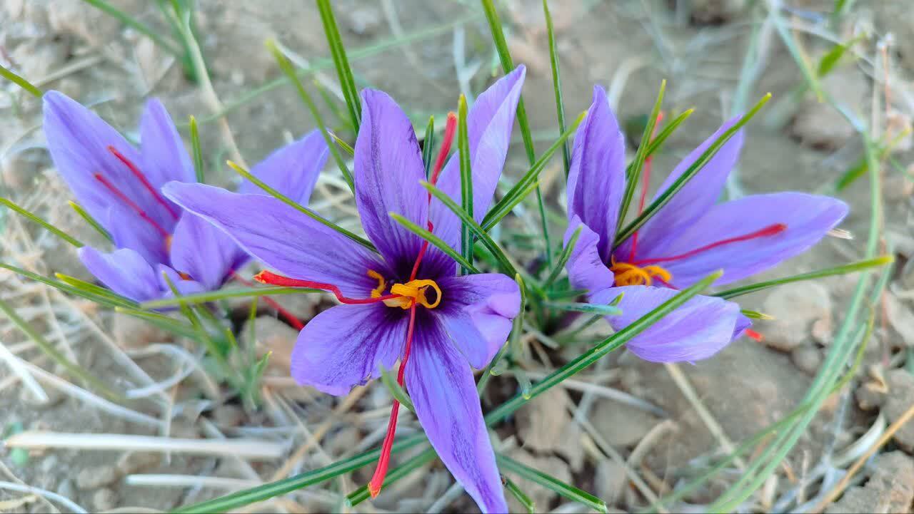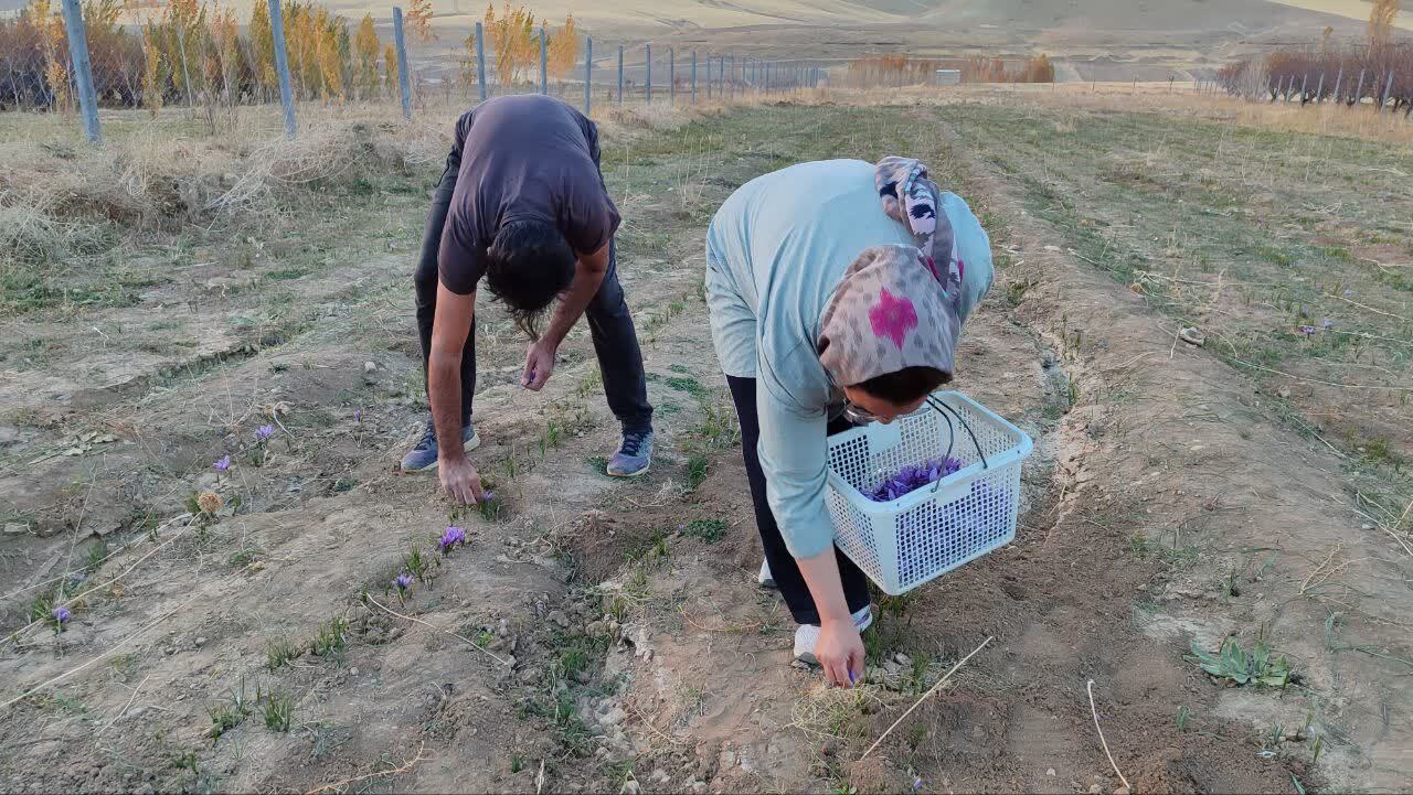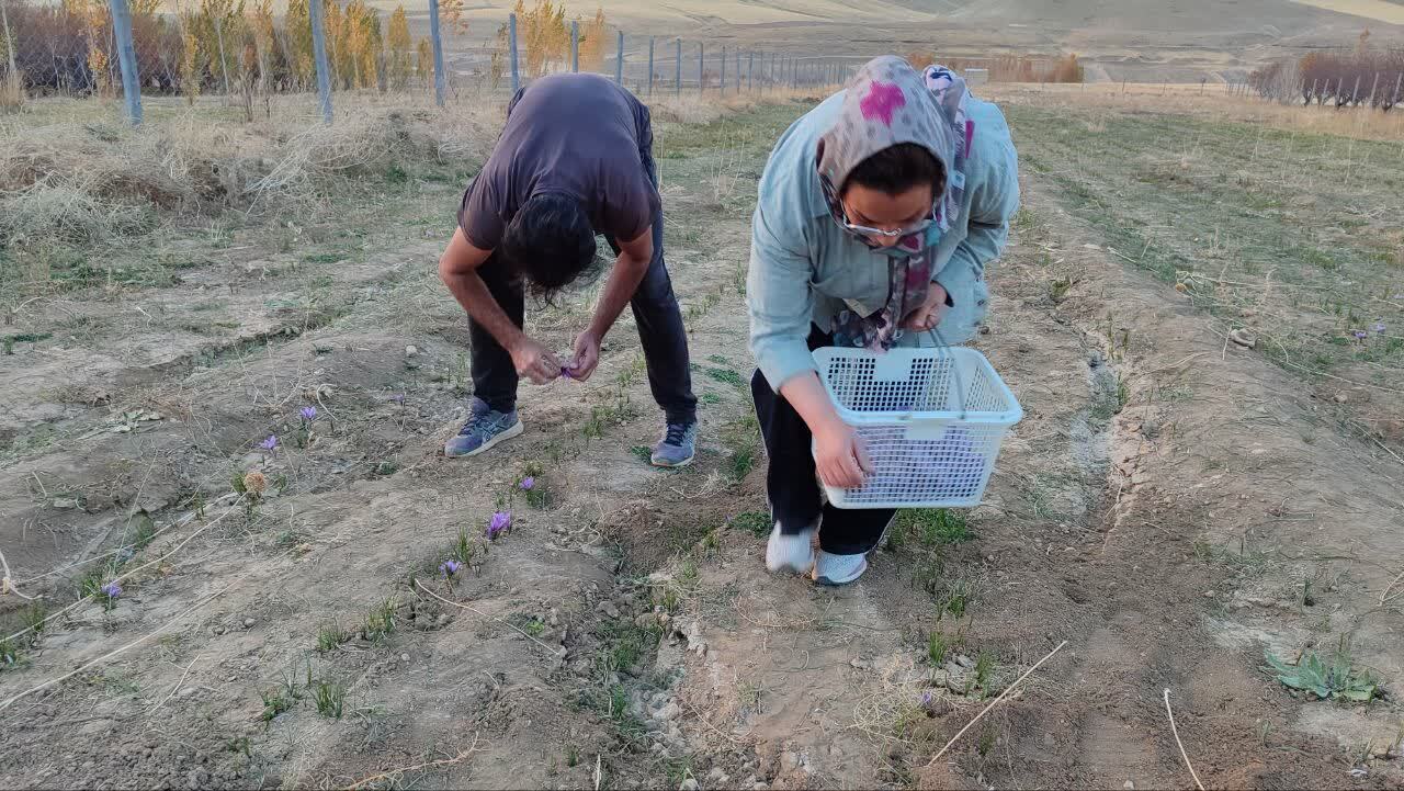 برداشت زعفران از مزرعه طرح اشتغال کمیته امداد در تکاب